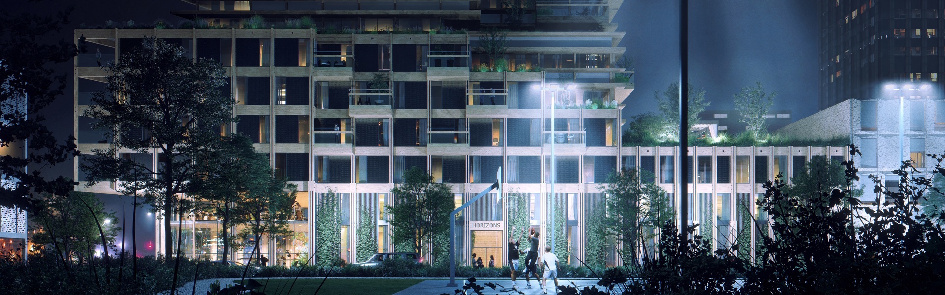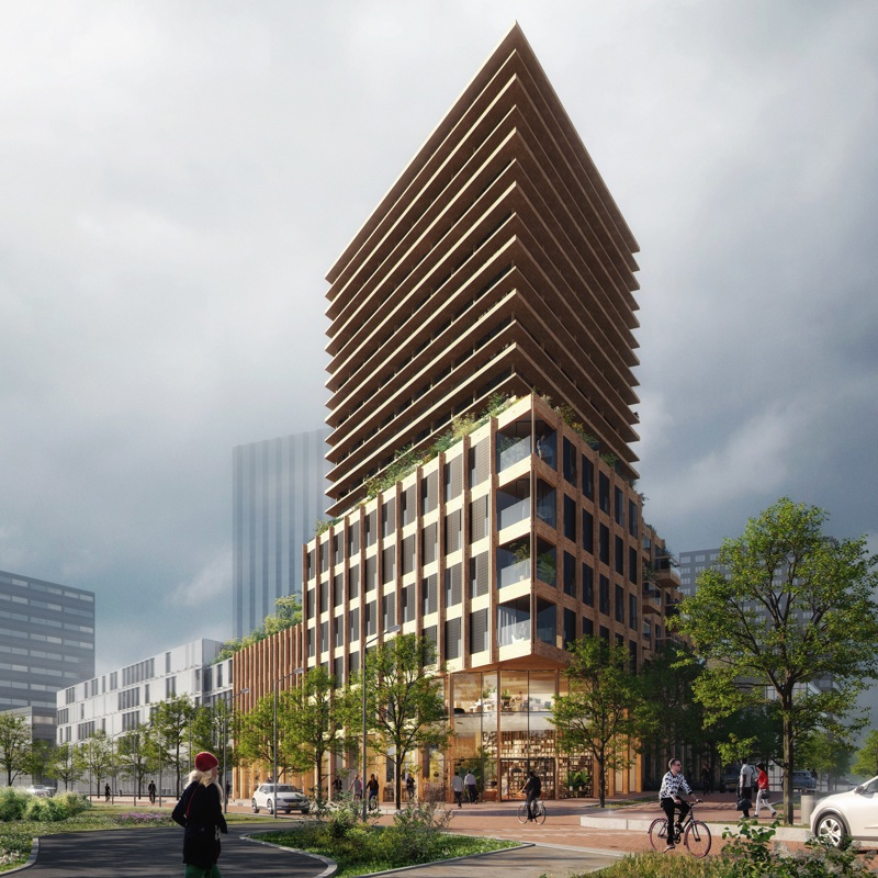Horizons creates a positive impact on the planet. Solitude is prevented through interconnection and an inclusive house program. Solar panels are part of the architecture, which means that energy is generated via the facades and space is created on the roofs for roof gardens of the future. These roof gardens help to restore and further enrich the biodiversity of the Sluisbuurt district. In addition, Horizons is a circular icon that consists of 62% bio-based materials and recycled materials. At the end of its lifespan, the residential building is 96% reusable. Furthermore, the wooden building saves about 3,000 tonnes of C02 and shows that man and nature can live in joint harmony. It is a building that sets the standard for the future in Amsterdam, The Netherlands and ultimately the world.