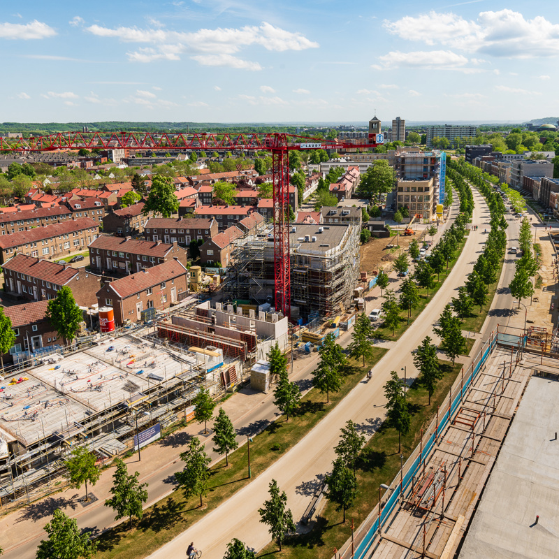 With a height of 30 metres, the highest point of Phase 2c within the Groene Loper Maastricht project has been reached. This is the second to last highest point on the north side, in the future one more higher point will appear on the north side of the Groene Loper in the form of a tower.