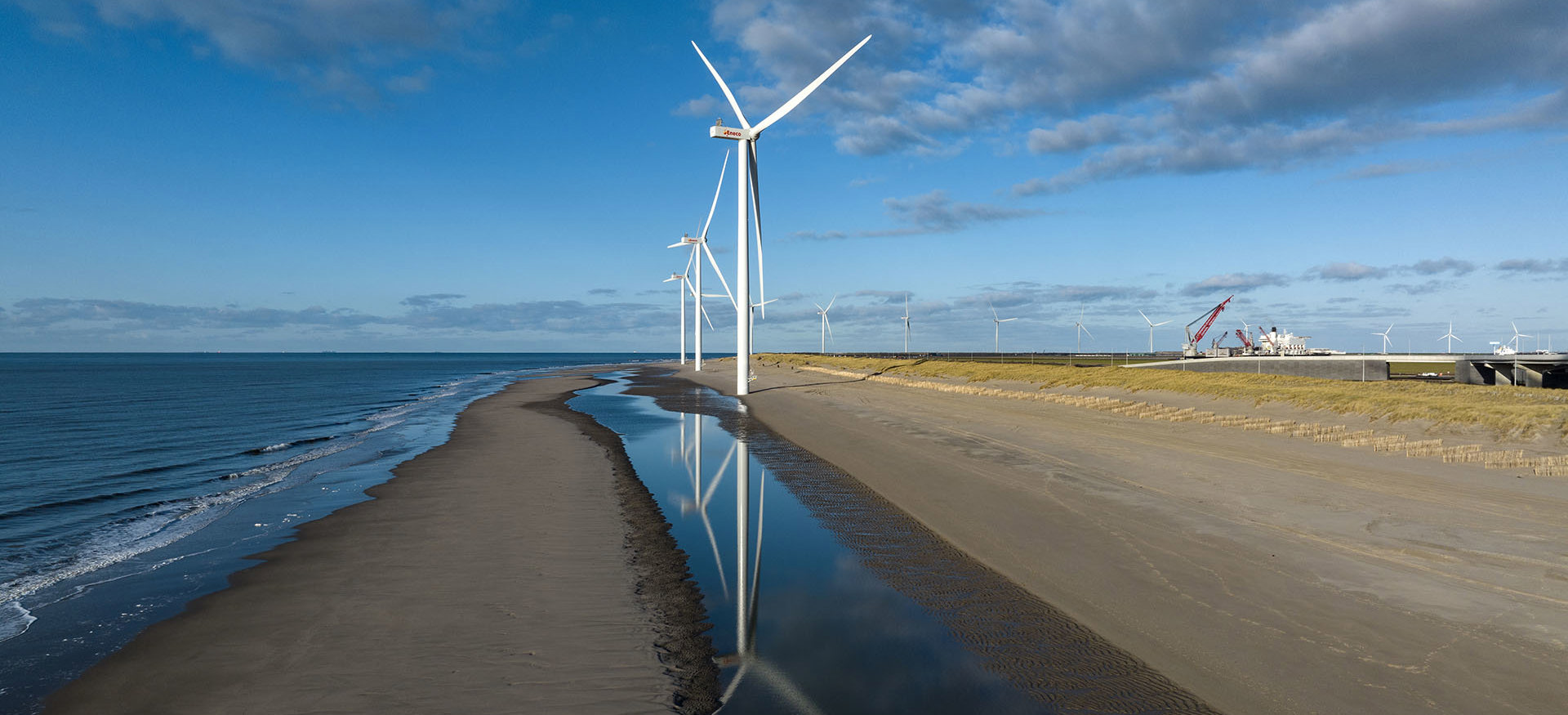 An example of these projects is the Maasvlakte 2 wind farm, completed in 2022, in which Ballast Nedam placed 22 wind turbines on the hard and soft seawall of Rotterdam's Maasvlakte. In doing so, Ballast Nedam used monopiles on land - a first in the wind sector. On the IJsselmeer, Ballast Nedam is in the final stages of realising 24 modern and powerful turbines for Windplanblauw. This includes designing and building the new turbine foundations, realising the park cabling and providing the connection to the substation.