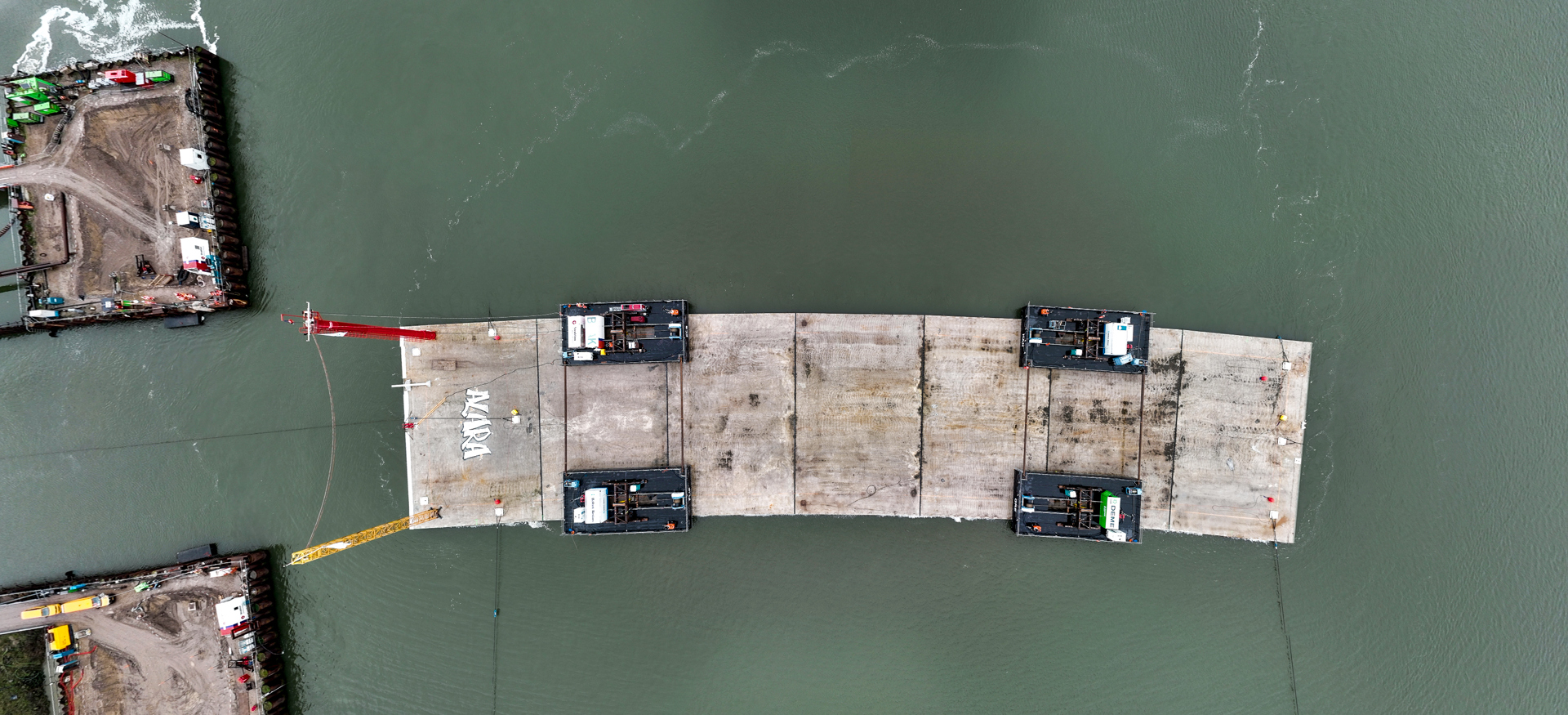 Every disadvantage has its advantage, as this event gave the team the opportunity to look for a solution to a previously unknown phenomenon. “We completely reconstructed the event afterwards, and found out what had happened. The team then adjusted the whole system of immersion and recalculated everything based on the new, increased forces. Among other things, this led us to work with heavier winches and thicker cables on the second immersion operation.” This operation had to be briefly postponed due to storm Babet, from October 21st to November 6th. But when immersion began on that day, the operation otherwise went smoothly. “I am proud that we managed to pull this off with the team. The cooperation went very well, as has been the case throughout the project. Not only with the consortium partners, but also with our client Rijkswaterstaat. Everyone made an effort all the time to look beyond their own boundaries and interests to achieve the common goal.”