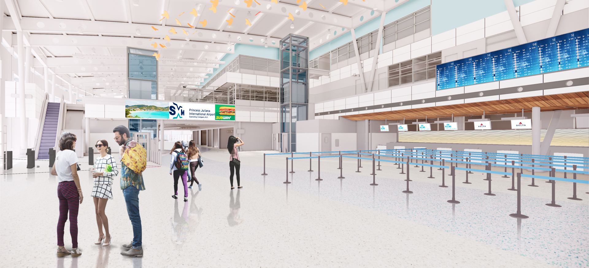 This renovation is urgently needed, as in 2017 Hurricane Irma caused severe damage throughout the island and the airport terminal in particular. Ballast Nedam International is renovating the entire airport terminal, including the facade, windows, check-in hall, check-in counters, security areas, departure gates, arrival hall, business lounge, offices and installations. Ultimately, the terminal will have a modern look with the latest techniques.