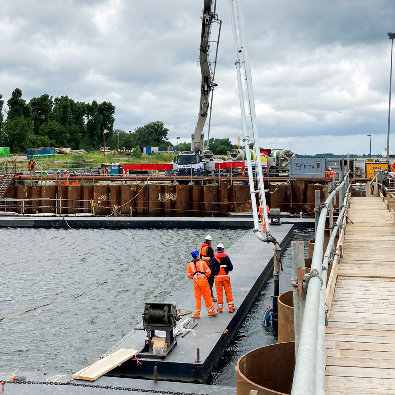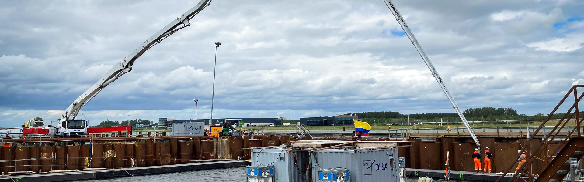 After months of hard work, the time has come: the first underwater concrete pour of the Maasdelta tunnel on the A24 Blankenburg Connection project.