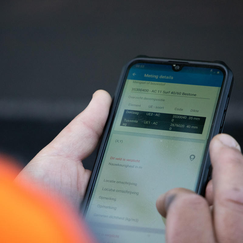 PIM is an online application that can also be accessed with an app. The PIM app is intended to record in-situ data of, for example, measurements with a phone or tablet. At the moment, mainly technologists use the app for their quality checks. All outdoor activities and relevant data - measurements, drill core, location - can be collected in the PIM app. But also the asphalt contractors can see exactly which asphalt requests they have for the coming period and keep an eye on the status of delivery.