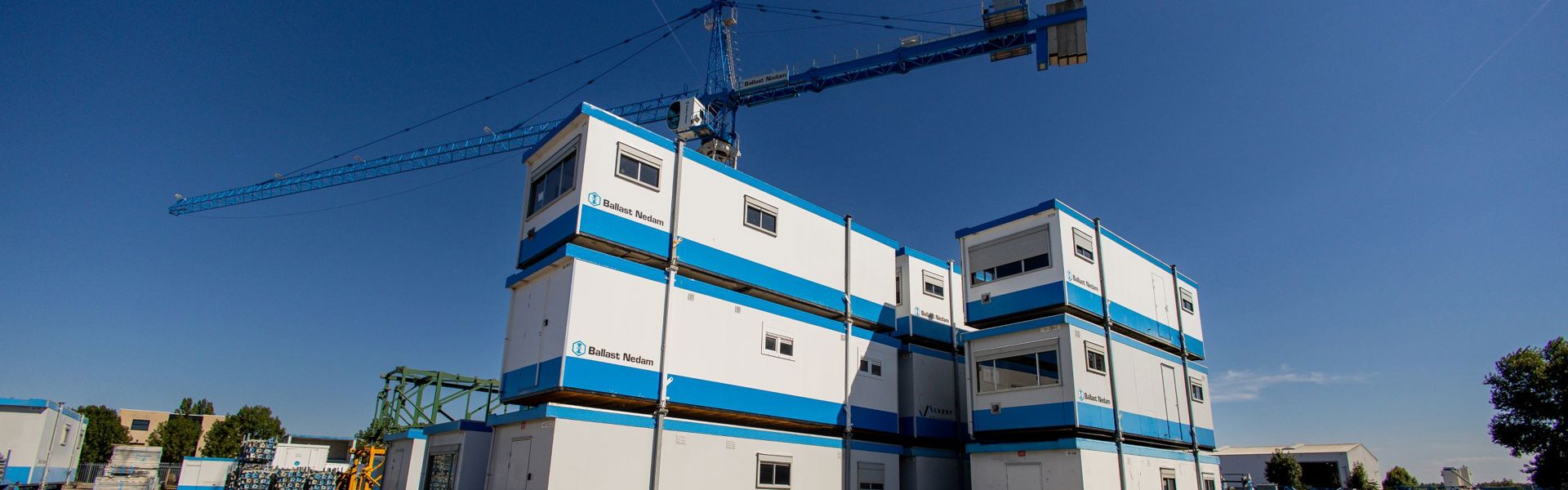 "In recent years, we have made major investments and purchased 250 switching units of 3x6 metres. These are used as office, break, or meeting rooms on the construction site. Switching units are modular and easy to place on top of or next to each other. These sustainable switching units feature good wall insulation, LED lighting that lights up with motion sensors, double glazing and heating and cooling system by means of a heat pump. We are also giving the old 3x10-metre cabins a second life and renovating the cabins so that they are as sustainable as the newly purchased units."