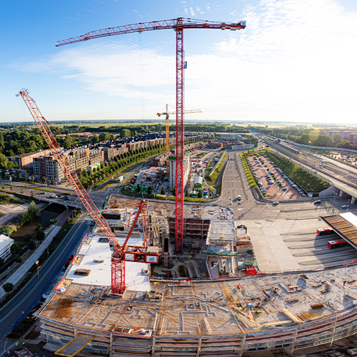 Building in our capital can be compared to building on a stamp. The building site is located right next to the metro station North, the starting point of the North-South subway line. It is a challenging place for a project of this size, both construction and logistics. Space is so limited that the construction site office shack is placed across the road on a sand-filled damped ditch. Simultaneously, in consultation with the municipality, public space is used to store building materials, and, if necessary, a construction hub in the port area can be used. A logistics employee is present every day so that all supplies take place just-in-time and just-in-place, and any nuisance for the environment is minimised as much as possible.