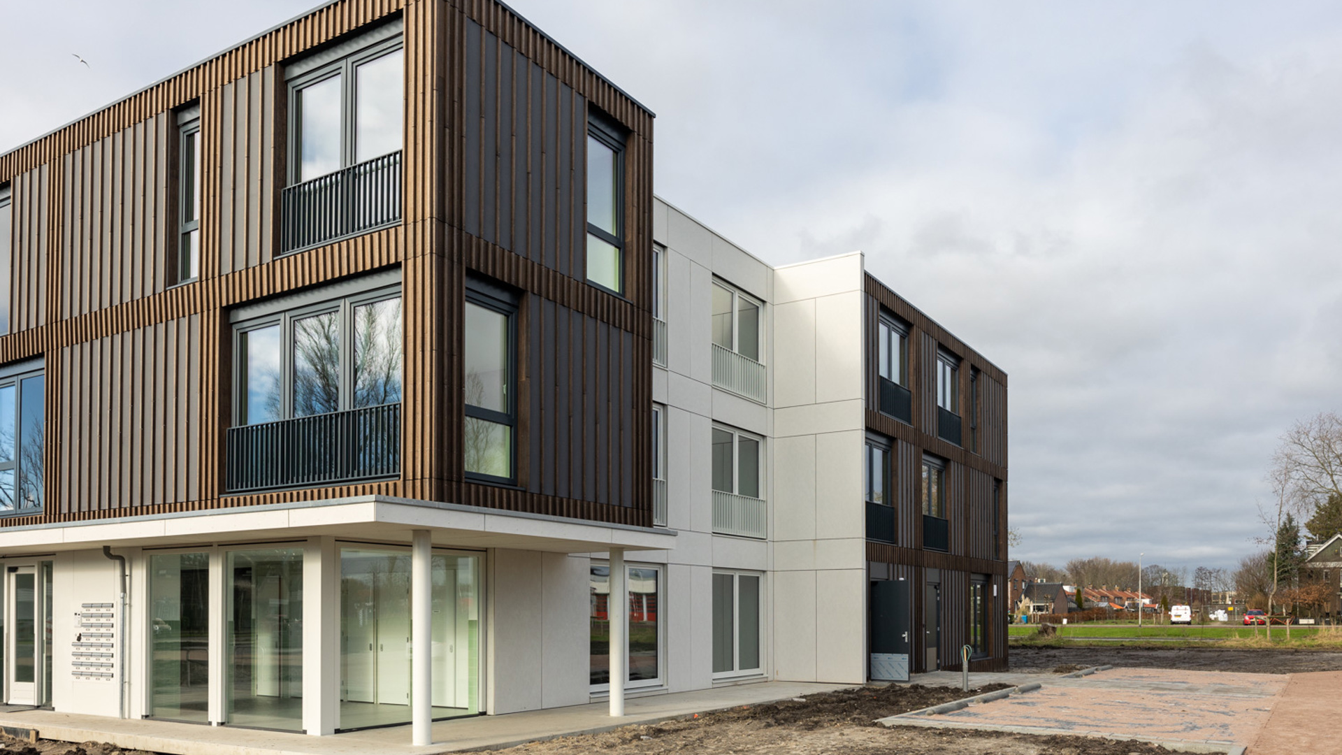 In Aalsmeer on the site of VVA's former football ground, Heddes Bouw & Ontwikkeling built 56 modular homes for housing association Eigen Haard.