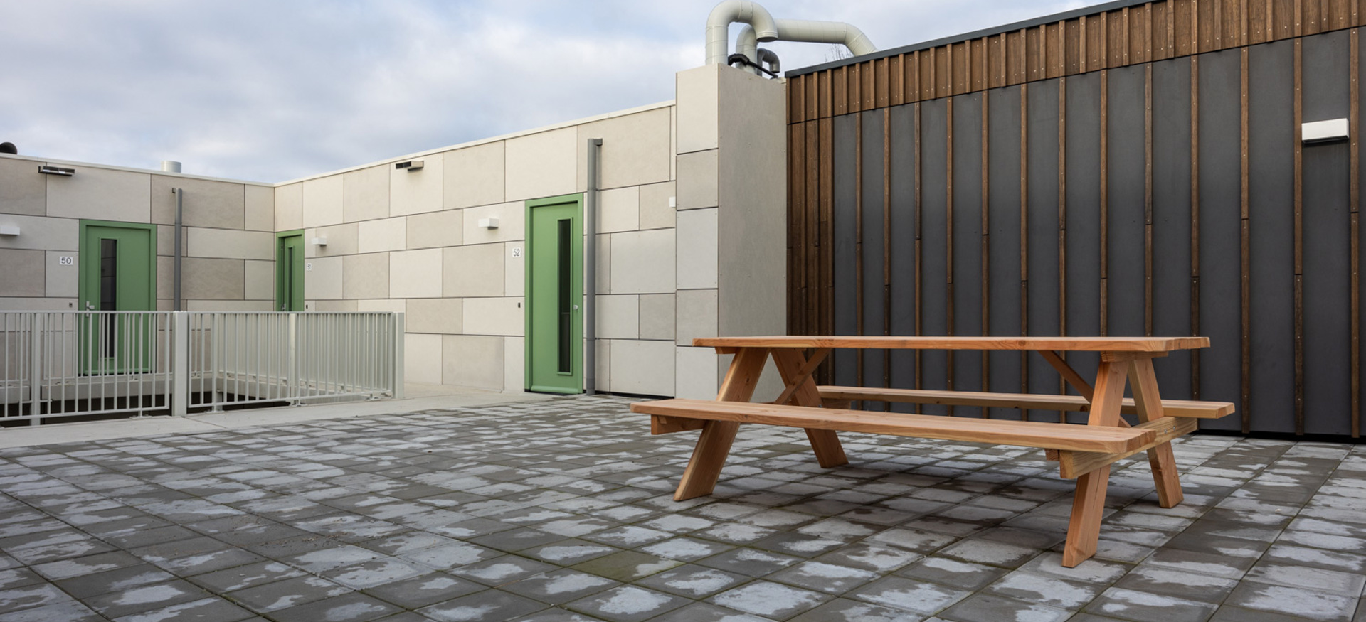The flats, composed of two prefabricated modules, will be placed in two blocks in a park-like setting, with 14 homes of each type per block. The design of the shells is flexible, so that the modules can be combined in the future to form three-bedroom houses, for example.