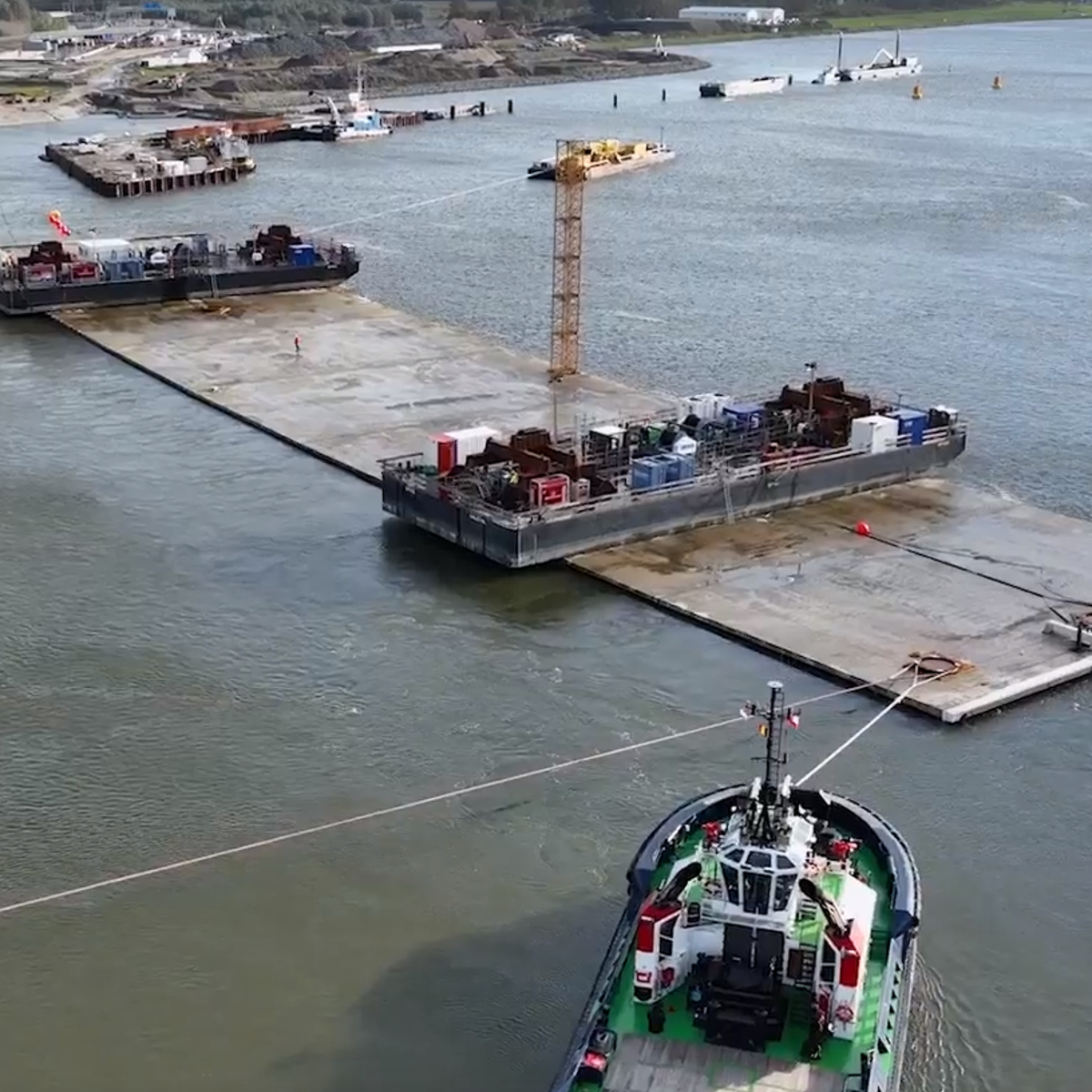 This plan got us thinking. Was there a smarter and more efficient way to realise this immersed tunnel? Together with DEME Group, we designed a method in which the excavation pits move further into the waterway. As a result, the tunnel consists of only two immersion elements. Ensuring more convenience to shipping.