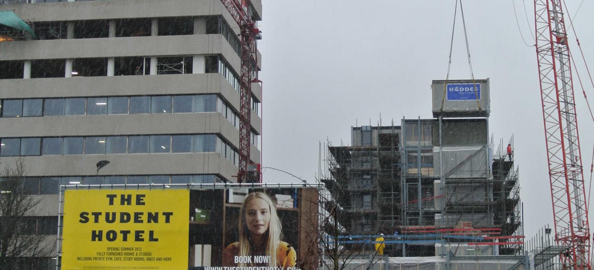 The Student Hotel consists of 258 rooms, realised through modular building.