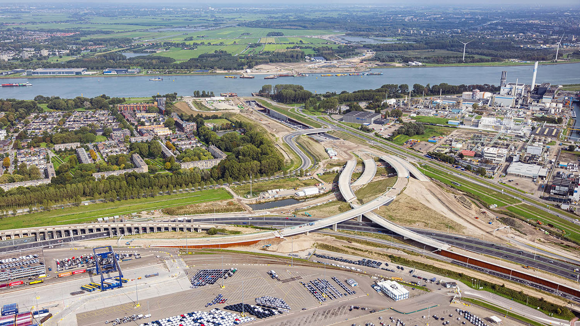 The A24 Blankenburgverbinding project has some literal ups and downs. On the northern side of the project lies the Vlaardingen junction, the connection between the new A24 and the existing A20. This junction will be recessed about four meters below ground level to preserve the green landscape's open character as much as possible. On the south side, the Rozenburg junction will be raised. With multiple flyovers rising eighteen meters above ground level, this junction reconnects the A24 with the A15.