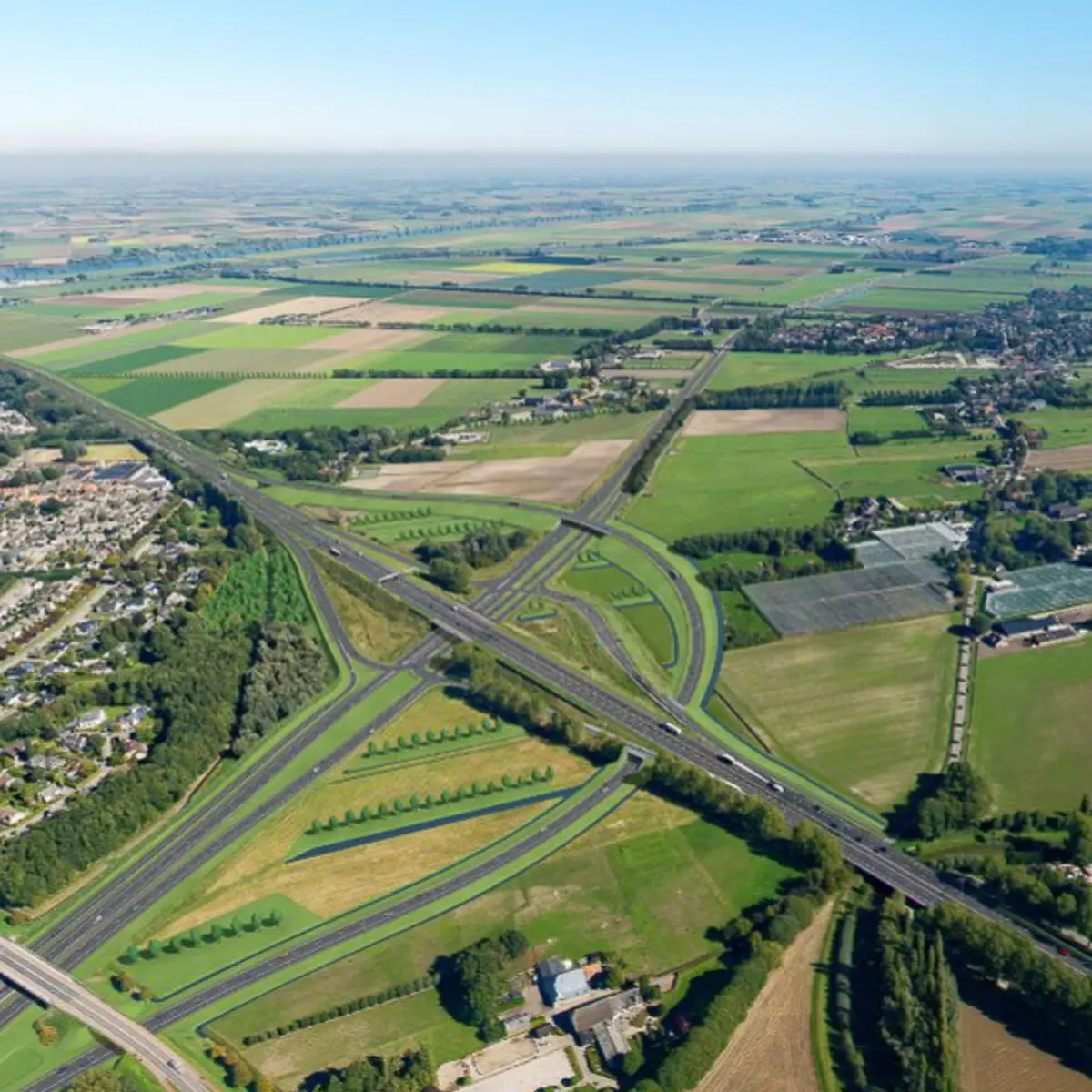 Our environment team holds regular discussions with all stakeholders such as municipalities, entrepreneurs and residents in the region. In addition, the impact on the surrounding area and nature was considered from the tender stage onwards. For instance, we will use emission-free equipment as much as possible, construct 3.5 kilometres of nature-friendly banks, install 630 insect hotels and scatter a flowery grass mixture on the verges. We will also install 260 traffic signs made of recycled aluminium, 615 traffic signs made of sustainable rice husk, 2,079 reflector posts made of recycled PVC and 831 bottle posts made of bamboo.